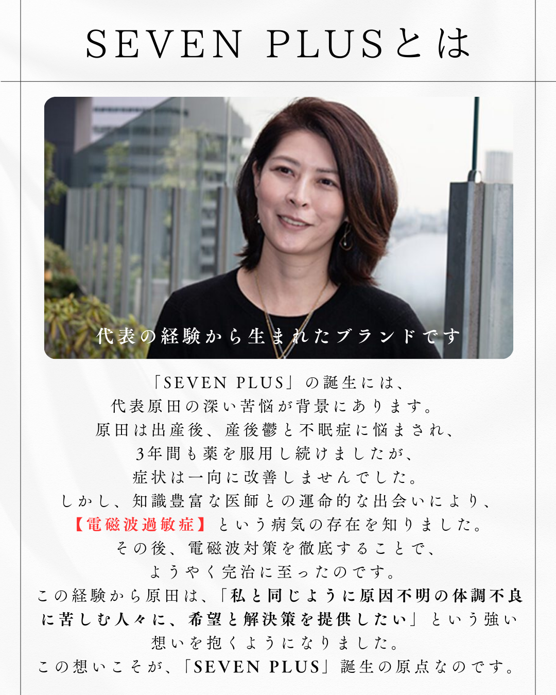 SEVEN PLUSは、代表が産後の不調と不眠に悩んだ経験から誕生しました。