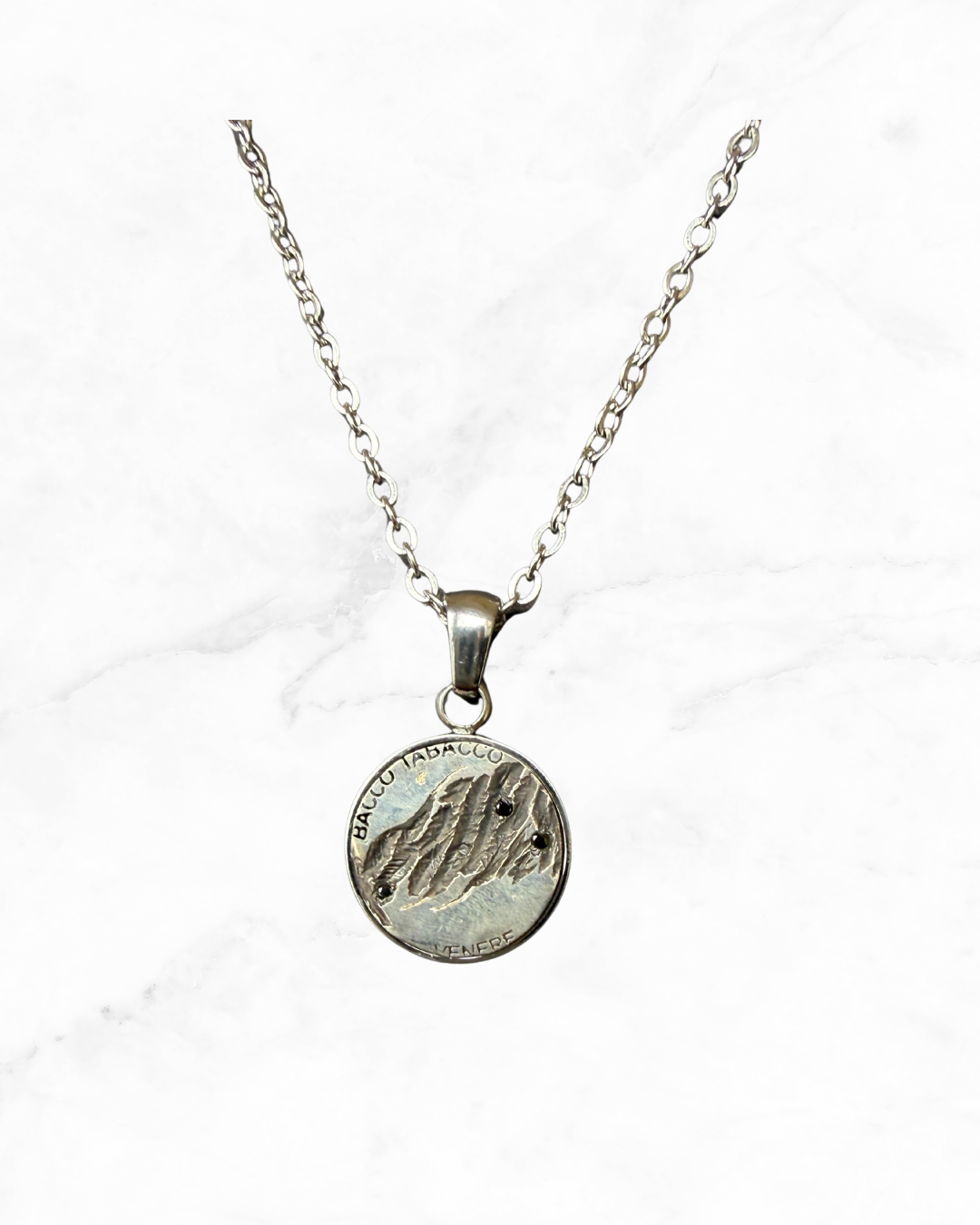 吊牌部分为银916,内嵌3颗黑色钻石。