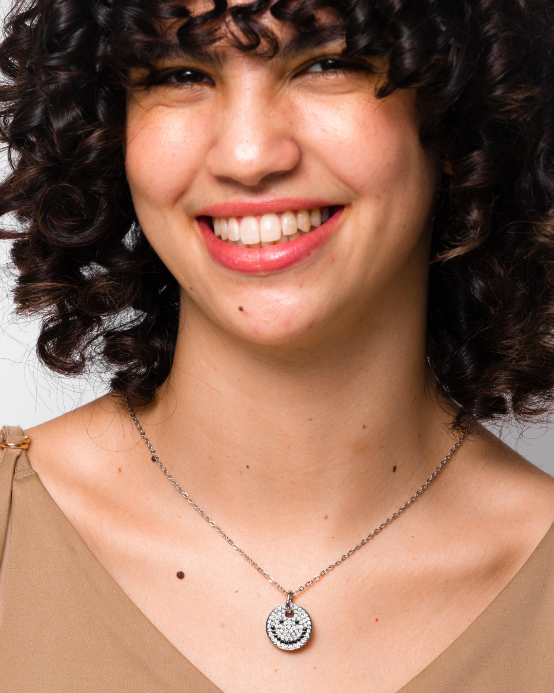 ニコちゃんマークの電磁波ネックレス購入しました。スワロスキーが入ってて、キラキラして綺麗で可愛いのでアクセサリーとしても使用できる所が気に入ってます。シルバーなのでどんな洋服にも合わせやすいです。
