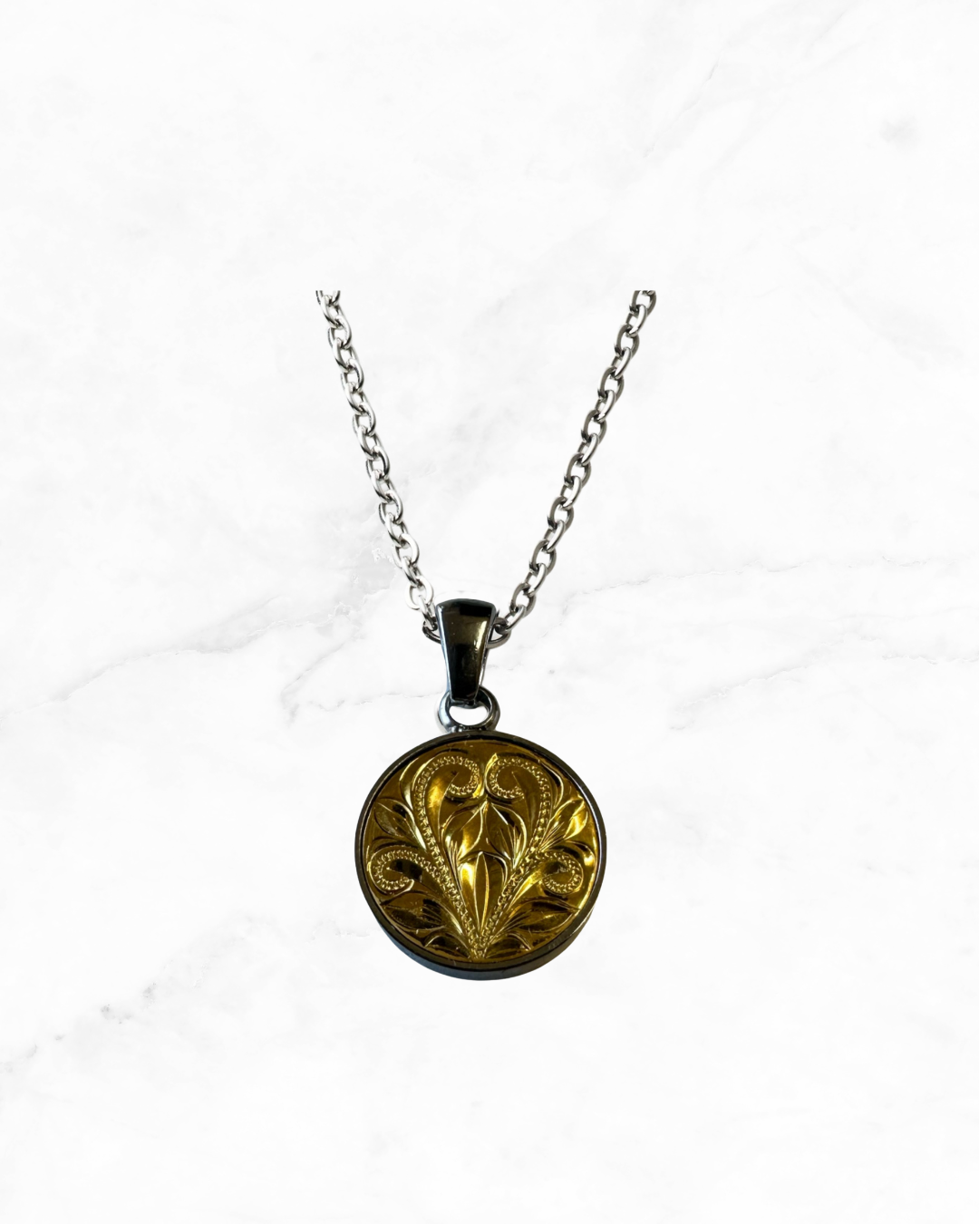 ハンドメイドハワイアンジュエリーとして名高いMaxi Hawaiiとのコラボレーションアイテム。1996年の創業以来、ハワイ・ワイキキから伝統と美しさをハンドメイドジュエリーで表現し、世界中に届けてきたMaxi Hawaiiシリーズ。確かな腕前と経験を持つジュエリー職人Howard Miaoが、一点ずつ丁寧に手彫りしています。デザイン名は「Poepoe」=ハワイ語で円形の意味。円満・平和の象徴を込め、マイレの葉とウェイブを組み合わせたハワイの自然をモチーフにしたコンビネーション柄が特徴です。